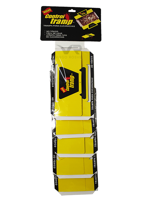 Control-tramp es una trampa de cartón, con una goma y pastilla específica que invita a las cucarachas a que entren a la trampa en donde son capturadas y mueren por falta de alimento.