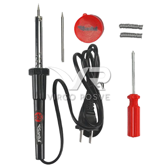 Cautín tipo lápiz punta de latón para trabajos ligeros con accesorios Santul.