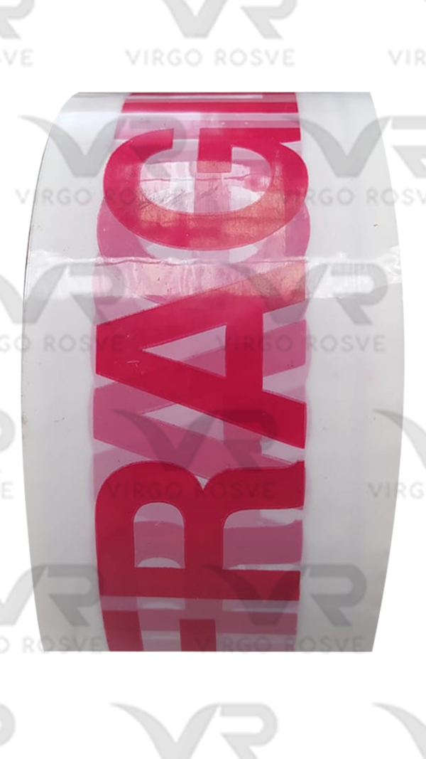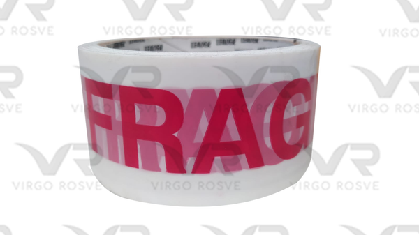 Cinta adhesiva personalizada "Frágil" "Manejese con cuidado", "Importante, esta cinta es un sello de garantía, en caso de encontrarse violada favor de reclamar a la empresa transportadora" (Las tres leyendas vienen en la misma cinta, una tras otra).